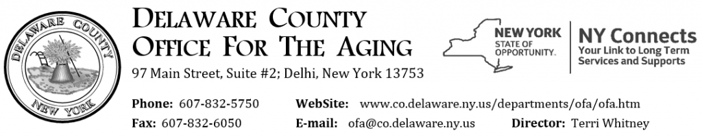 Delaware Co. Office for the Aging & NY Connects, 1pm – 3pm