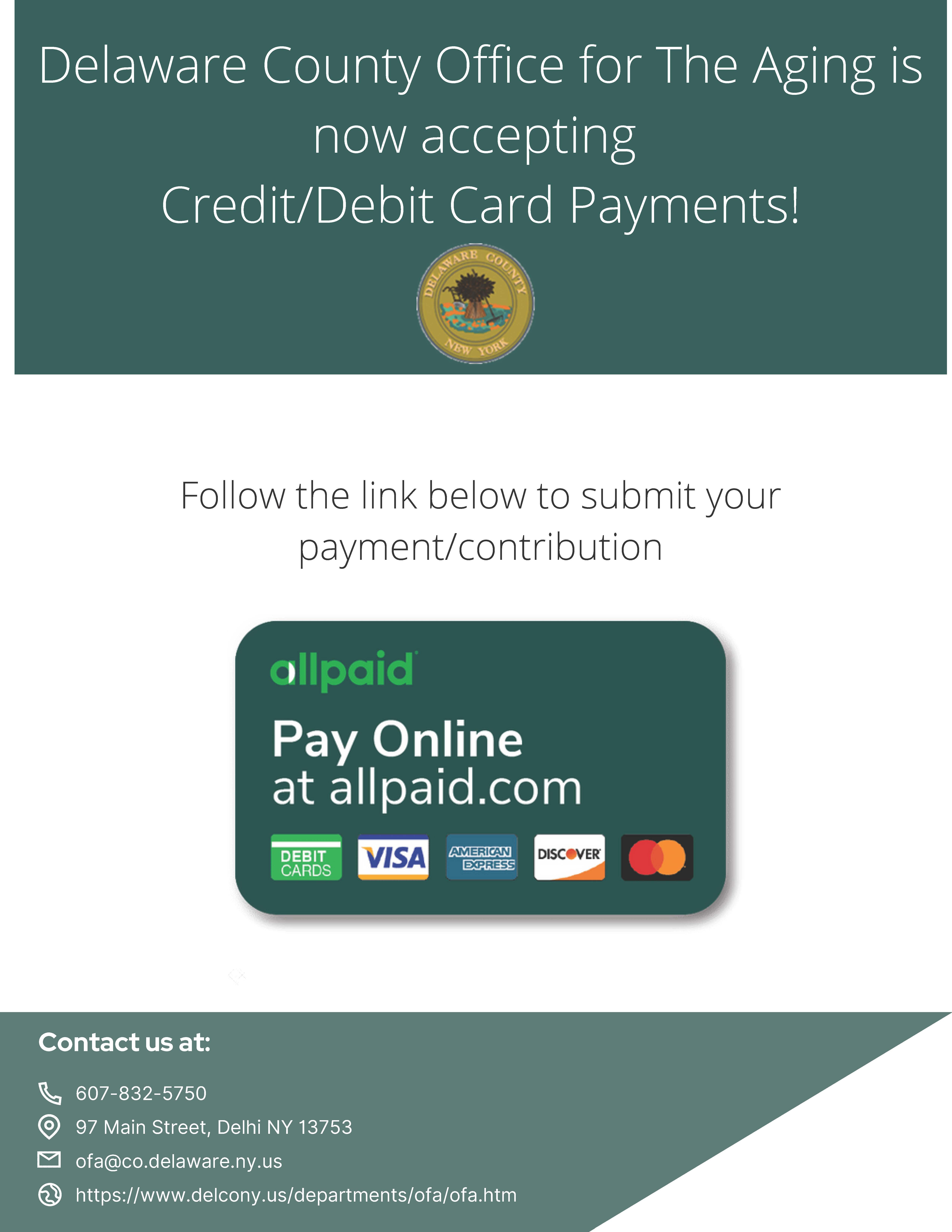 Please make checks payable to: Delaware County Office For The Aging and send to us at
