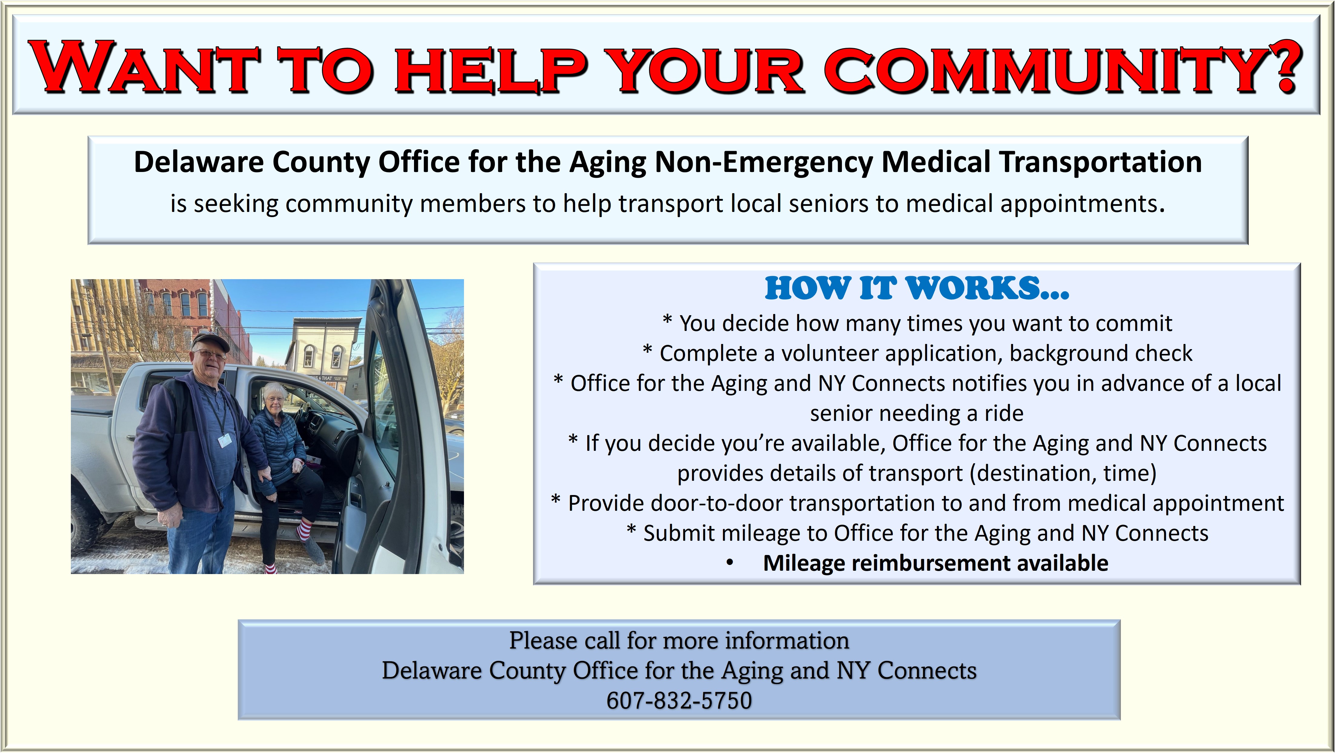 The Delaware County Office For The Aging welcomes contributions to help maintain and expand its services to the elderly.