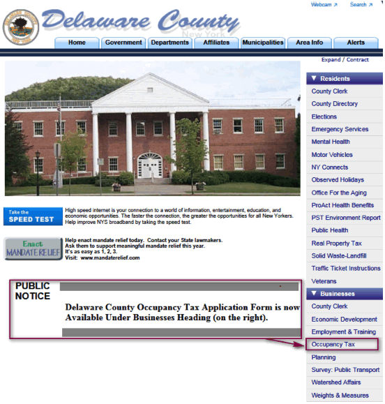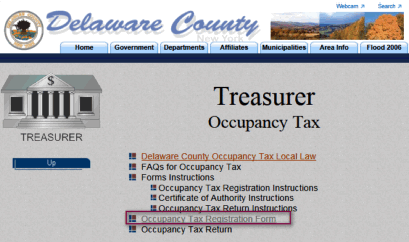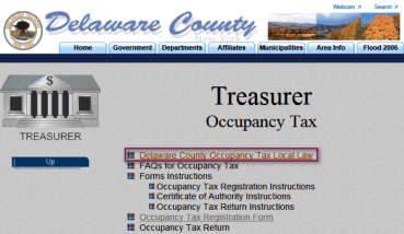 - On the Treasurer Occupancy Tax page select Delaware County